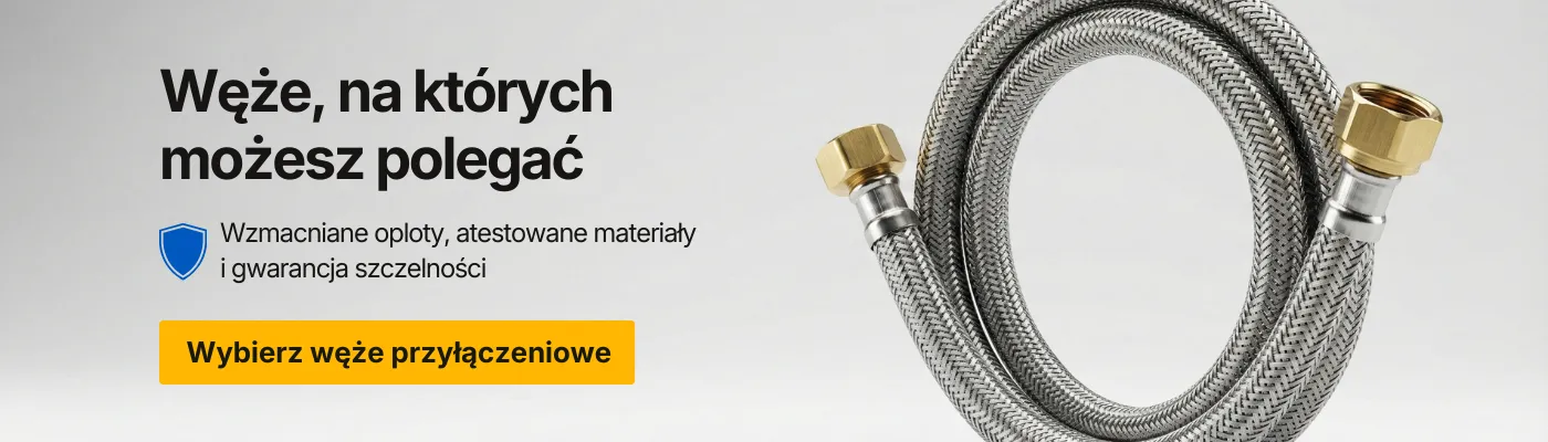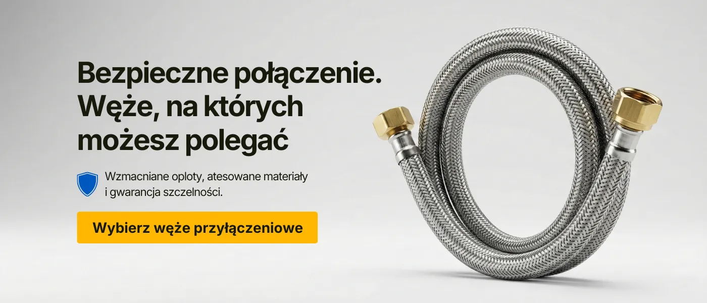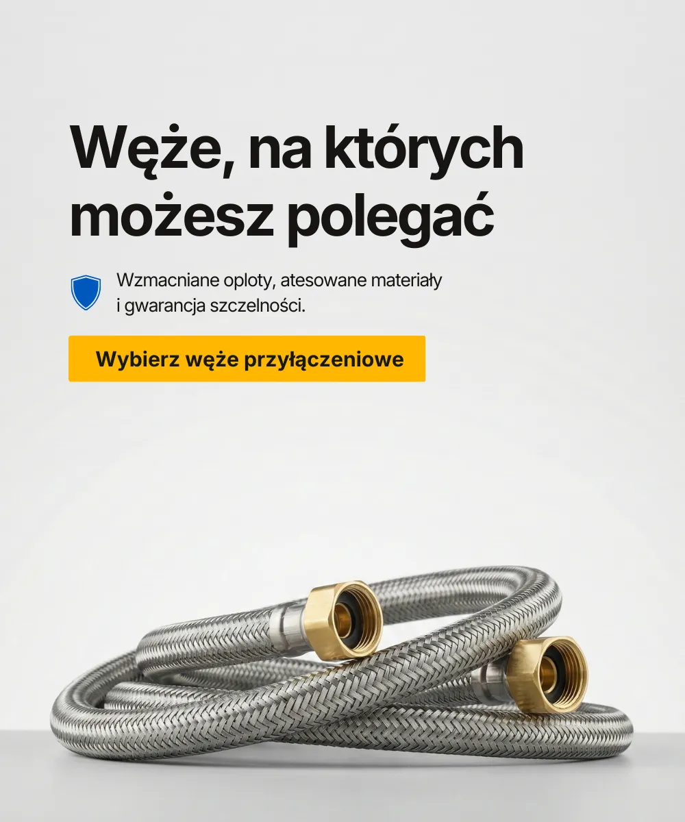 Wężyk to często najsłabsze ogniwo domowej instalacji, dlatego w Mixipik nie uznajemy kompromisów jakościowych. Oferujemy wyłącznie sprawdzone przewody o podwyższonej wytrzymałości – od elastycznych modeli w oplocie ze stali nierdzewnej (inox) po atestowane i zbrojone węże techniczne. Niezależnie od tego, czy podłączasz pralkę, zmywarkę, czy wymieniasz armaturę prysznicową, masz pewność, że guma nie sparcieje, a zakucie nie puści pod ciśnieniem. Wszystkie nasze produkty do wody użytkowej i gazu spełniają rygorystyczne normy bezpieczeństwa i posiadają wymagane prawem certyfikaty. Wybierz odpowiednią kategorię poniżej i postaw na szczelność, która daje spokój na lata.